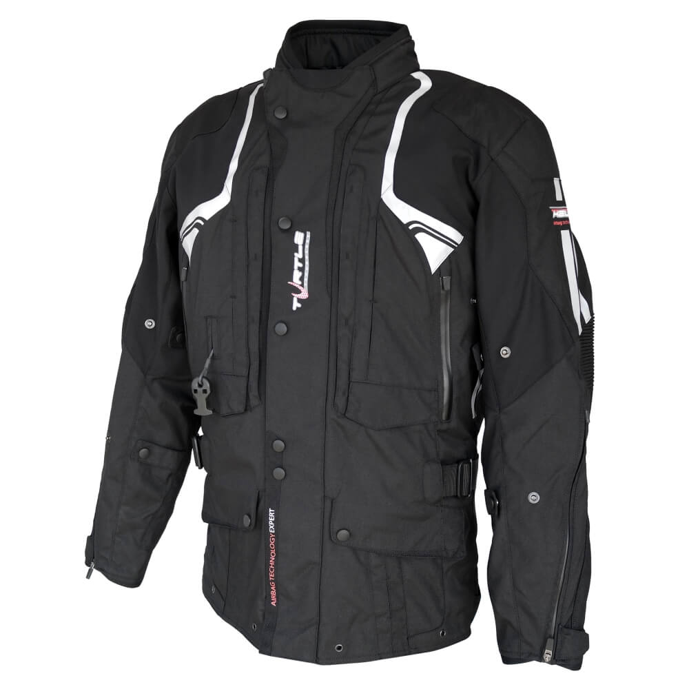 K tomu je ještě bunda vybavena zádovým protektorem, který působí jako želví krunýř. To má za následek odolnost proti protržení a plné rozptýlení síly na povrchu. Avšak samotný airbag je chytře integrován tak, že bunda vypadá jako klasická motocyklová textilní bunda.