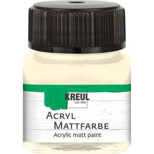 Akrylová barva KREUL Zklidnite svou mysl a malujte …  KREUL Akrylové matné barvy dodávají každému dekorativnímu projektu jednoduchou eleganci. Jejich přitažlivost spočívá v dokonalé shodě barevných odstínů. Teplá grafitová šedá, přátelská citronová žlutá nebo tmavě zelená jedle. Každý si může vybrat  ten správný odstín pro svou jedinečnou atmosféru. Robustní barvy zajišťují spolehlivé použití a práce s nimi je maximálně jednoduchá. Barvy jsou ideální volba ¼ jako základ, pro lakování nebo jako základ pro decoupage nebo přenos fotografií. Jejich krémová konzistence a příjemný zápach činí práci nesmírně příjemnou. Vlastnosti, které vás přesvědčí: vhodná pro děti, odolávající slinám odolávající povětrnostním vlivům na vodní bázi bohatá barevná paleta matných, lesklých a metalických odstínů ideální pro umění, hobby, školu, modelářství vhodná pro řadu podkladů jako dřevo, papír, len, kůži, kámen, kov, sklo, hlínu, keramiku, vosk, umělou hmotu a polystyren ředitelná vodou, vzájemně míchatelná, bez zápachu, rychle schnoucí vynikající barevná krytost a stálobarevnost, vyrobená z vybraných pigmentů štětce a ostatní pracovní pomůcky lze jednoduše vodou vyprat