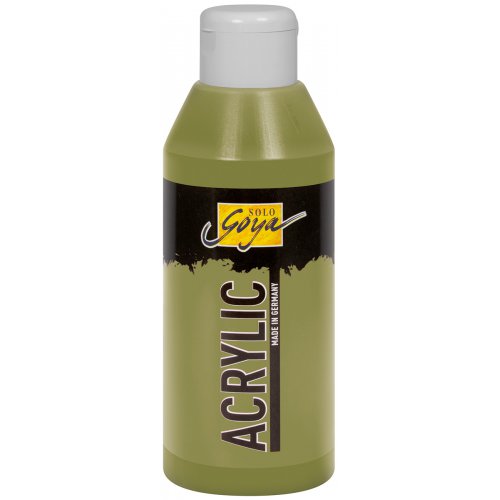 Vítejte ve světě akrylových barev 🙂 SOLO GOYA akrylové barvy jsou to nejlepší, co Vám můžeme nabídnout. Jsou to vysoce pigmentované barvy v akademické kvalitě, které jsou vhodné jak pro studenty a umělce, tak i pro každého běžného uživatele.  Tyto krémové akrylové barvy jsou vyráběné v Německu, čemuž odpovídá i jejich velká kvalita. Naleznete zde mnoho krásných odstínů, a to včetně metalických a třpytivých. Jejich velkou výhodou je, že jsou použitelné do interiéru i exteriéru. Jsou ideální pro malování na papír, kartón, plátno, kámen, kov, dřevo, kůži a mnoho umělých povrchů. SOLO GOYA akrylové barvy jsou na vodní bázi po zaschnutí jsou matné mají vysokou barevnou intenzitu a brilantní zářivost velmi dobře kryjí a obsahují pigmenty proti vyblednutí mají jemnou, hladkou konzistenci a střední viskozitu jsou vhodné pro krémovou malbu jsou vodou ředitelné jednotlivé odstíny lze mezi sebou míchat rychle a rovnoměrně schnou jsou voděodolné po zaschnutí Náš tip: Pokud chcete vyzkoušet akrylovou pouring techniku, pak jsou tyto barvy nejlepším řešením. Jsou krémové a tak je nebude třeba příliš ředit. Akrylové pouring medium vám tak vydrží déle 🙂 Odstín zelená země: vysoká odolnost vůči světlu, krycí