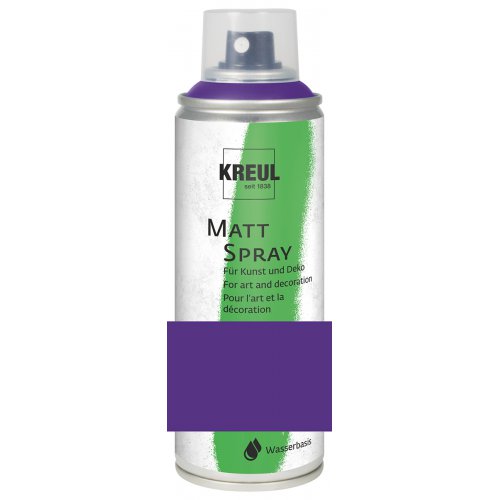 KREUL Sprej matný 200 ml Sprej jsou barevně přizpůsobeny sortimentu akrylovy´ch barev KREUL – jednoduše použitelné. Mohou používat pro hobby tvorbu, vy´robu dekorací nebo pro umělecky´ projekt – uživatel KREUL Sprejů se rozhodne pro spolehlivé, brilantní a ekologickésprejování. Zvláště vhodné pro obtížnější barevnou aplikaci, jako jsou například sušené květiny, ratanové vy´robky nebopro další členité vy´robky nebo povrchy. vyrobeno na vodní bázi menší zápach a rozstřik mimo požadovanou plochu Dobrá odolnost proti světlu, vysoky´ lesk, dobré krytí rychleschnoucí•pro vnitřní i venkovní aplikaci vhodné na téměř všechny povrchy, vhodné také na polystyren moderní vzhled vy´robku a identifikace barevného odstínu „kroužkem“