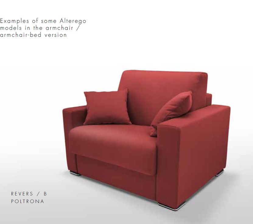 Rozkládací křeslo na každodenní spaní Revers přináší to, co každá sedací souprava přinášet má, komfort, krásu a účelnost. Odráží italské hodnoty, které spočívají v designu a kvalitě. Revers nabízí celou řadu vzhledových a rozměrových možností. Umožňuje i výběr odlišných područek. Preferujete zaoblené tvary nebo dáte přednost jasným pravoúhlým liniím? Vybrat si můžete z deseti různých stylů, které jsou v jedné ceně. Je jen na Vás, kterou si zvolíte. Křeslo Revers navíc spojuje zážitek a odpočinek v jedno. Křeslo je připravené i na každodenní spaní, a proto nabízí potřebné kvality pro dobrý odpočinek.