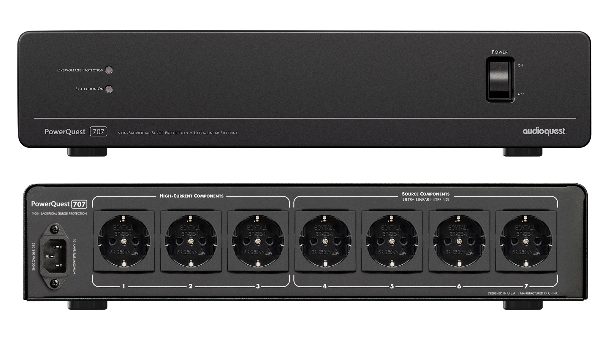 VYSOCE KVALITNÍ SÍŤOVÝ FILTR S OBVODEM VÝKONOVÉ REZERVY A PŘEPĚŤOVOU OCHRANOU – (filtrace v šířce pásma 8 kHz – 1 GHz) Základním kamenem každého audio systému je kvalitní napájení. Čistá energie bez šumu vždy dokáže zlepšit výkon audio systému zcela zásadním způsobem. Nakontaminovaný šum totiž běžně překrývá ty nejjemnější detaily a bývá příčinou ztrát těch nejdůležitějších částí signálu. S čistým napájením lze dosáhnout dokonale „černého“ pozadí bez šumu a pokud chcete odhalit skutečné schopnosti vašeho domácího audio systému, stává se pro vás filtrace napájení nezbytností. Se síťovým filtrem PowerQuest 707 EU zažijete novou dimenzi prostoru a transparentnosti, nebývalý frekvenční i dynamický kontrast a důraz na detail, vlastnosti, které Váš systém dosud skrýval právě z důvodu šumu v napájení. SÍŤOVÝ FILTR POWERQUEST 707 EU – NOVÝ ROZMĚR PROSTOROVÉ SCÉNY AudioQuest PowerQuest 707 je vysoce výkonný kondicionér napájení se 7 AC zásuvkami (3 High-Current pro zařízení s vysokým odběrem proudu a 4 pro zdrojové komponenty). Vynikající účinnost filtrace je zajištěna díky ultralineárnímu rozptylu asymetrického šumu v diferenciálním režimu s rozšířenou šířkou pásma (8 kHz – 1 GHz, více než 22 dB) – tento šum je běžně přítomný v rozvodné síti nebo vzniká v připojeném zařízení. Navíc probíhá i filtrace symetrického šumu ve společném režimu v pásmu (30 kHz – 100 MHz) – tento šum je vyzařován do země a na „nulový“ kontakt napájecích kabelů. OBVOD VÝKONOVÉ REZERVY PowerQuest 707 EU využívá obvod pro potlačení šumu s nejširší šířkou pásma ve své třídě, ale pro ještě vyšší efektivitu má integrován modul Transient Power Correction (TPC). Jedná se v podstatě o „proudový zásobník“ 45 A, který krátkodobě (25 ms) podporuje špičky v odběru proudu, a tím udržuje nebo dokonce zlepšuje dynamicky náročné pasáže. Obvod je aktivní u tří HIGH-CURRENT zásuvek, do kterých tak bez obav z komprese můžete zapojit zesilovače, aktivní reproduktory nebo subwoofery. Díky tomu tak využíváte i u těchto komponentů veškerý přínos filtrace a zároveň se nemusíte obávat dynamických omezení. Tento unikátní pasivní / aktivní obvod pro korekci přechodného výkonu je specifický pro nejvyšší modely síťových filtrů AudioQuest NIAGARA, ale v této cenové třídě je aplikován poprvé. Většina síťových filtrů na trhu (ve všech cenových kategoriích), silnoproudé zásuvky buď nefiltruje vůbec, nebo se snaží pouze minimalizovat kompresi proudu, PowerQuest 707 EU zajistí filtraci napájení v širokém pásmu a zároveň problém s kompresí proudu úspěšně napravuje. DOKONALÉ NAPÁJENÍ PRO CELÝ SYSTÉM K PowerQuest 707 EU můžete bez obav zapojit celý domácí audio systém, protože nabízí 3 High-Current zásuvky pro komponenty s proměnným proudem (výkonové zesilovače, aktivní reproduktory, A/V přijímače, subwoofery atd.) a 4 zásuvky s lineárním filtrem pro zdrojové komponenty s konstantním proudem (televizory, zařízení pro streamování médií, přehrávače disků, gramofony, předzesilovače, atd.). Tyto 4 zásuvky jsou plně izolovány od 3 High-Current AC zásuvek, čímž je zajištěno lepší přizpůsobení filtru připojenému zařízení a vyšší schopnost efektivně řídit složité interakce:Vysokofrekvenční šum a další indukované rušení přítomné ve střídavém proudu dodávaném z rozvodné sítě.Šum běžně přítomný v každém AC napájecím kabelu.Šum vznikající v jednotlivých komponentách audio systému, který se vrací a zpětně proniká do výstupních obvodů PowerQuest. KOMPLEXNÍ PŘEPĚŤOVÁ OCHRANA – „ZAPOJ A ZAPOMEŇ“ Další s velkých předností PowerQuest 707 EU je schopnost ochránit všechny připojené komponenty před před účinky extrémního přepětí. Součástí síťového filtru je totiž také nedestruktivní přepěťová ochrana s obvodem pro rychlé odpojení při extrémním přepětí.Akceptuje opakovaně přechodová přepětí a špičky až do 6000 V nebo 3000 A (tedy maximum, které může zvládnout domácí nebo kancelářská elektrická instalace). Poškození z elektrických bouří nebo z výkyvů napájecí sítě je tak prakticky nemožné a v okamžiku, kdy se hodnoty napětí vrátí do bezpečného provozního rozsahu, přepne automaticky ochranný obvod PowerQuest 707 EU zpět do provozního režimu. Váš drahý audio systém již bude trvale bezpečně chráněn a pro PowerQuest 707 EU tak beze zbytku platí heslo: „Zapoj a zapomeň“. KVALITNÍ NAPÁJECÍ KABEL V CENĚ – DÉLKA 2 M AudioQuest je široce respektován jako výrobce vynikající kabeláže a tak v balení nenajdete jen běžný přívodní napájecí kabel. S výrobkem je dodáván vysoce kvalitní kabel PQ-716 s polotuhými vodiči z