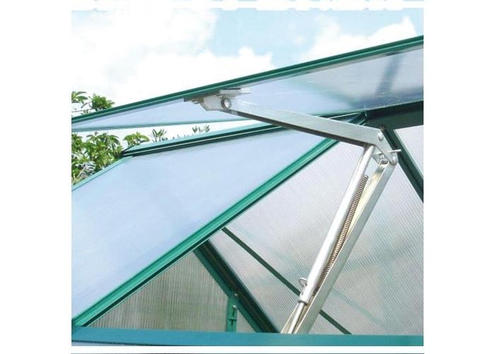 Otvírač je opatřen pístem a pákou, které nahrazují potřebu manuálního otvírání, protože fungují na principu tepelné roztažnosti. S narůstající teplotou uvnitř zahradního skleníku píst postupně posouvá páku, automaticky otvírá střešní okno a tím zajišťuje přirozené větrání. Tato jedinečná vlastnost brání přehřátí zahradního skleníku v horkých letních dnech a chrání rostliny před podchlazením během chladnějších nocí nebo dnů.