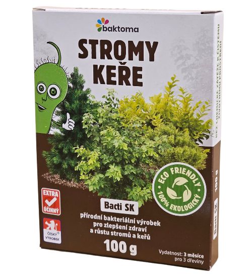 Přípravek Bacti SK je směs půdních bakterií kombinovaná s vybranou mikrovýživou pro podporu růstu a zdraví rostlin. Bakterie obsažené v Bacti SK činí půdní minerály snadno rozpustnými a přístupnějšími pro využití rostlinami. Vytlačují patogeny, rostlinu živí a podporují její zdravý růst. Pro rostlinu se stane dostupnějším zejména fosfor, draslík a železo. Výrazně stimuluje přirozenou odolnost proti listovým chorobám (padlí, plísně, houby..), zesílí kořeny i celá nadzemní část, plody ovocných dřevin jsou zdravější, větší a chutnější.