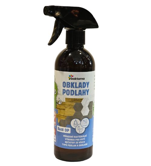 Bacti OP je směs speciálních selektovaných přírodních bakterií produkující enzymy. Receptura přípravku obsahuje také směs několika vzájemně se doplňujících povrchově aktivních látek, které rozpouštějí a odstraňují organické znečištění z pevných povrchů. Tento biologicky aktivní neutrální čistící prostředek vykoná kompletní práci v jednom kroku – myje, osvěžuje a likviduje zápach tím, že rozloží a stráví jeho zdroj. Použití je ve všech sociálních zařízeních pro mytí podlah a stěn, umytí klozetů a pisoárů, jakožto i pro jednoznačnou likvidaci zápachu.