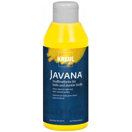 Barvení textilu je jedna z nejoblíbenějších kreativních činností…pomocí barev na textil Javana tak můžete vytvářet krásná trička, polštáře či si ozdobit třeba tašku vlastními motivy 🙂 Barva na světlý a tmavý textil JAVANA velmi dobře kryje (má vysoký obsah pigmentu) má krémovou konzistenci je na vodní bázi jednotlivé barvy se dají mezi sebou míchat a můžete tak vytvářet další odstíny používá se k barvení bavlny, přírodních textilií a smíšených tkanin s maximálním podílem 20% syntetických vláken je vhodná k malování na textil štětcem, na šablonování, razítkování a tisk na textil po zaschnutí je třeba fixovat teplem (2 – 5 minut žehličkou z rubu nebo přes pečící papír  – teplotu nastavte dle typu textilu) po zafixování je světlostálá obarvené textilie lze prát v pračce do 40 stupňů Na dělání kontur doporučujeme k barvám Javana na světlý a tmavý textil fixy OPAK na světlý a tmavý textil https://www.kreativnisvet.cz/vyhledano/seznam-strana1?sqtxt=opak+javana Náš tip: Před nanášením barvy na nový textil ho nejdříve vyperte. Zabráníte tím zmenšení a znehodnocení textilu a barev v důsledku pozdějšího praní.