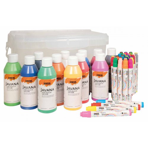 Otevřete barevný svět kreativity s naší extra velkou sadou barev na světlý textil KREUL!   Tato sada je dokonalou volbou pro každého textilního návrháře, učitele, rodiče či kreativce, který chce oživit svět kolem sebe jedinečnými a živými barvami. Ať už se jedná o projekty v mateřských školách, skupinové aktivity nebo osobní umělecké podniky, s našimi barvami na textil přivedete každý kousek látky k životu s nevídanou snadností a stylem. Naše sada obsahuje 18 fixů na textil ve dvojbalení, které vám umožní pracovat s precizností a detailem, a to v široké škále barev od jemných pastelů až po syté odstíny a neonové výbuchy. K tomu přidáváme 12 barev na textil ve 250 ml baleních, které jsou ideální pro rozsáhlejší aplikace na světlé textilie. Ať už pracujete na bavlněných tričkách, batistových šátcích nebo látce s příměsí max. 20 % syntetiky, naše barvy zůstanou živé a odolné. Vše je pečlivě uloženo v praktickém a kompaktním boxu, takže organizace a skladování vašich malířských potřeb bude hračkou. Už žádný nepořádek nebo ztracené barvy – s naší sadou máte vždy vše přehledně a po ruce. Sada obsahuje: 18 fixů na textil po 2 perech (žlutá, oranžová, červená, růžová, hnědá, světle zelená, zelená, bledě modrá, modrá, fialová, šedá, černá, jemná růžová, karmínově červená, tyrkysová, neonově oranžová, neonově růžová, neonově žlutá), 12 barev na textil na světlé textilie po 250 ml (oranžová, karmínově červená, královská modrá, zářivě zelená, černá, bílá, zlatožlutá, májově zelená, tmavě hnědá, azurově modrá, růžová, červená) Proč si vybrat naši sadu textilních barev KREUL? 1. Rozmanitost barev: 18 fixů po dvou kusech a 12 barev v tekuté formě, které poskytují nekonečné možnosti pro vaši kreativitu. Barvy jsou na vodní bázi, krémové a odolné vůči vyblednutí. 2. Vysoká kvalita: Barvy jsou intenzivní, trvanlivé a po zafixování odolné vůči praní (až do teploty 60°C), což zaručuje, že vaše díla zůstanou dlouho krásná. Fixujte žehličkou při teplotě nastavené dle druhu látky po dobu cca 5 minut. 3. Na různé textilie: Ideální na…