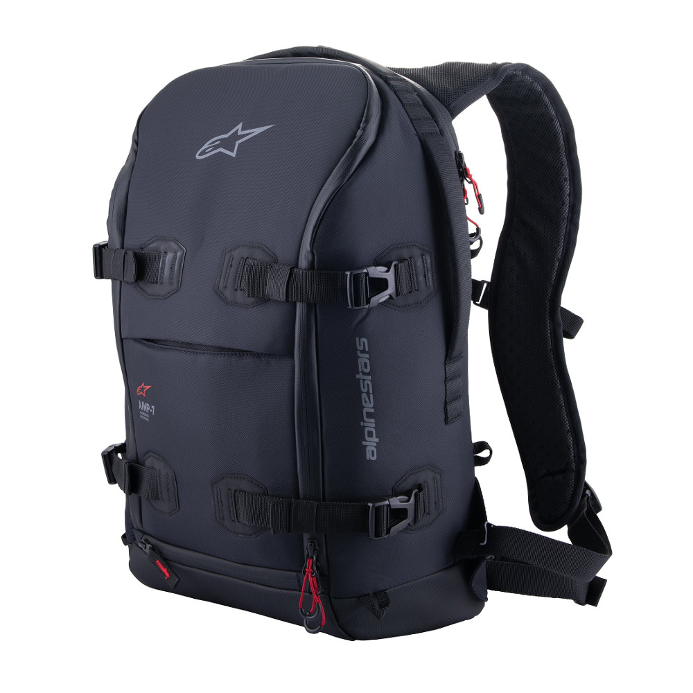 Aerodynamicky tvarovaný moto batoh s pláštěnkou vhodný i pro notebooky a tablety.. Alpinestars AMP-7 je aerodynamický moto batoh pro přepravování výbavy a nezbytností během jízdy na motorce i mimo ni! Celková kapacita batohu je 22 l. Obšívka je vyrobena z technické strukturované textilie s polstrovanými panely. Výztuhy v zadních a spodních partiích pomáhají udržovat tvar batohu. Dlouhý obvodový zip hlavní přihrádky pak umožňuje snadný přístupu dovnitř batohu, včetně polstrované kapsy na notebook nebo tablet. K dispozici máte také menší čelní přihrádku.