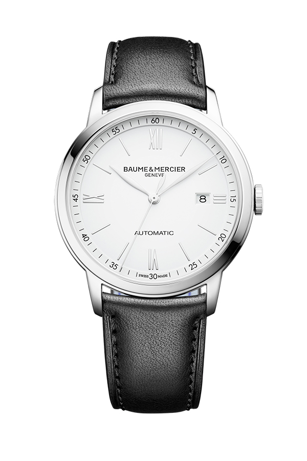 Modelová řada Baume & Mercier Classima je zárukou mimořádné elegance ve všech modelech. Nadčasový design těchto pánských hodinek staví na efektní kombinaci černé a bílé. Ocelové pouzdro je usazené na stylově čistém koženém černém pásku. Nechává plně zaznít přehledné uspořádání bílého ciferníku, jehož časové úseky dělí pouze decentní stříbrné detaily. Hodinky pohání mechanický strojek s automatickým nátahem.