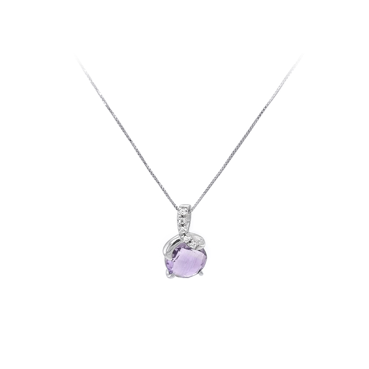 Beny Jewellery Dámský Náhrdelník s Fialovým Kamenem z Bílého Zlata