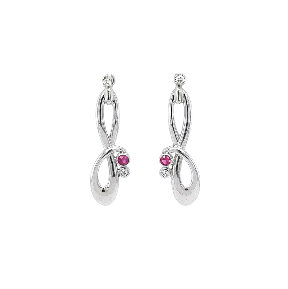 Beny Jewellery Luxusní Náušnice z Bílého Zlata s Rubínem a Zirkony