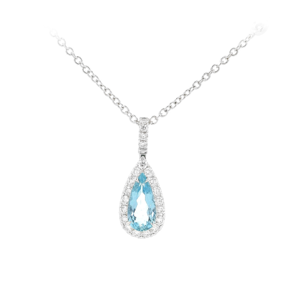 Beny Jewellery Luxusní Šperk s Akvamarínem ve Tvaru Kapky a Damantovým Halo