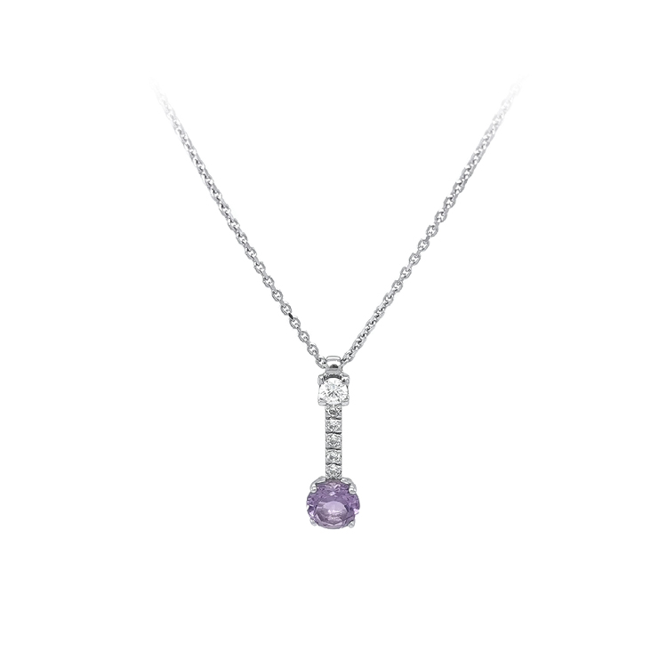 Beny Jewellery Náhrdelník s Fialovým Kamenem z Bílého Zlata