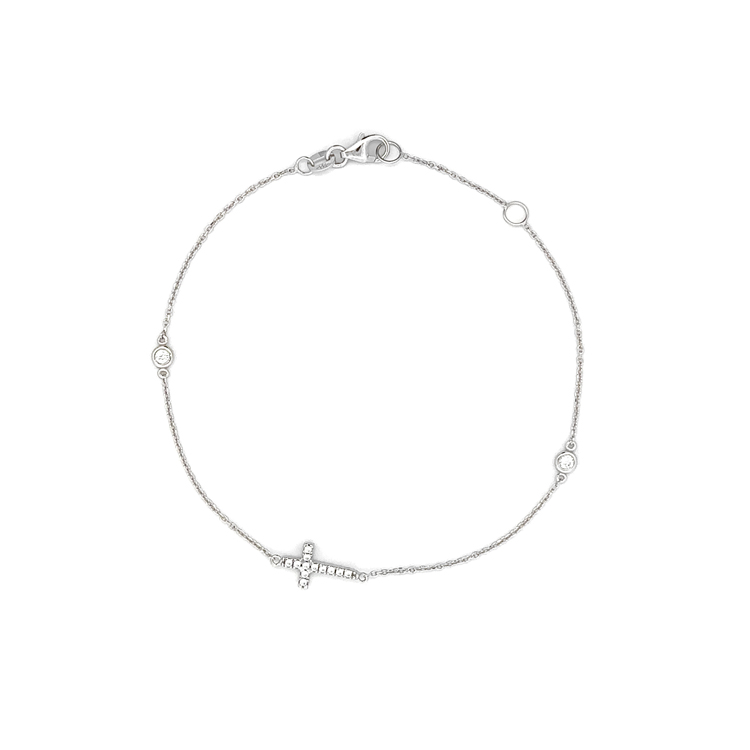 Beny Jewellery Náramek se Zirkony s Křížem z Bílého Zlata