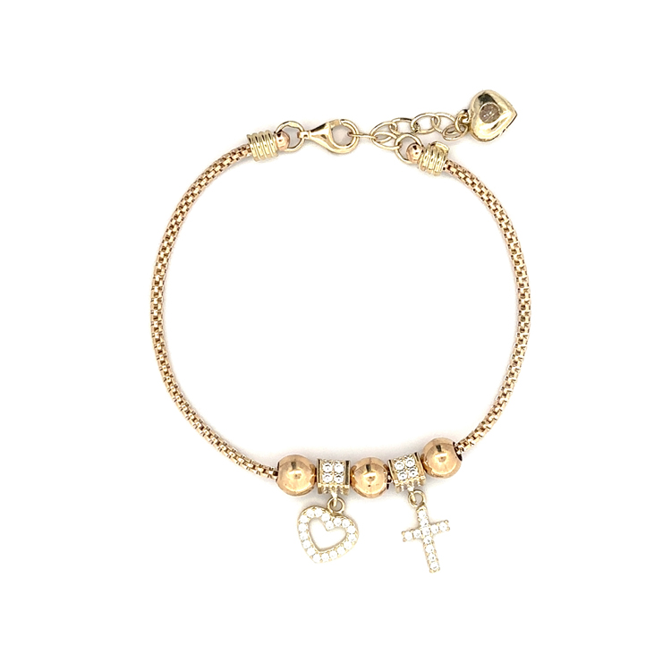 Beny Jewellery Náramek ze Zlata se Zářivými Kameny a Symbolikou Lásky a Víry