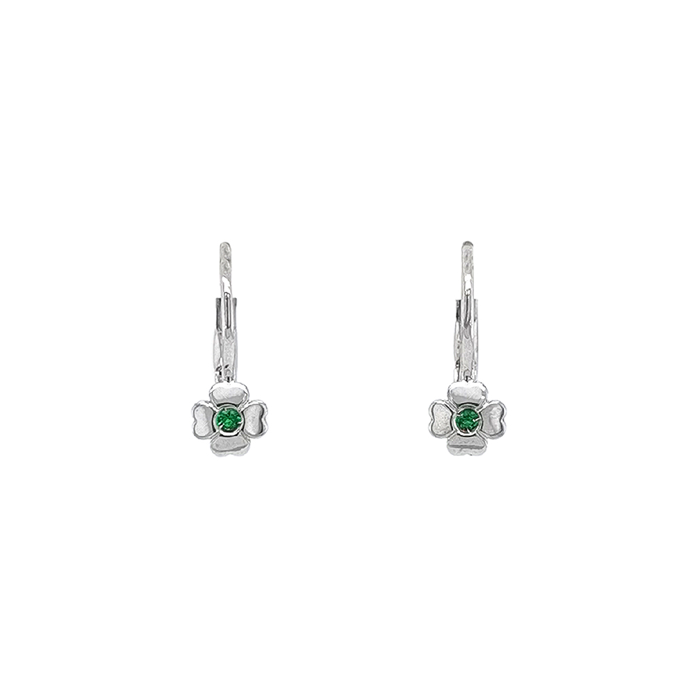 Beny Jewellery Náušnice Čtyřlístek se Smaragdy z Bílého Zlata