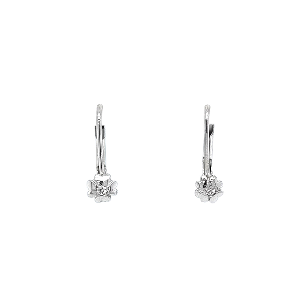 Beny Jewellery Náušnice Čtyřlístek se Zirkony z Bílého Zlata