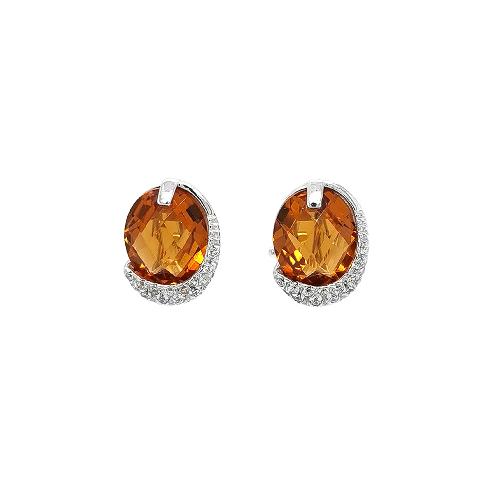 Beny Jewellery Náušnice s Citrínem z Bílého Zlata