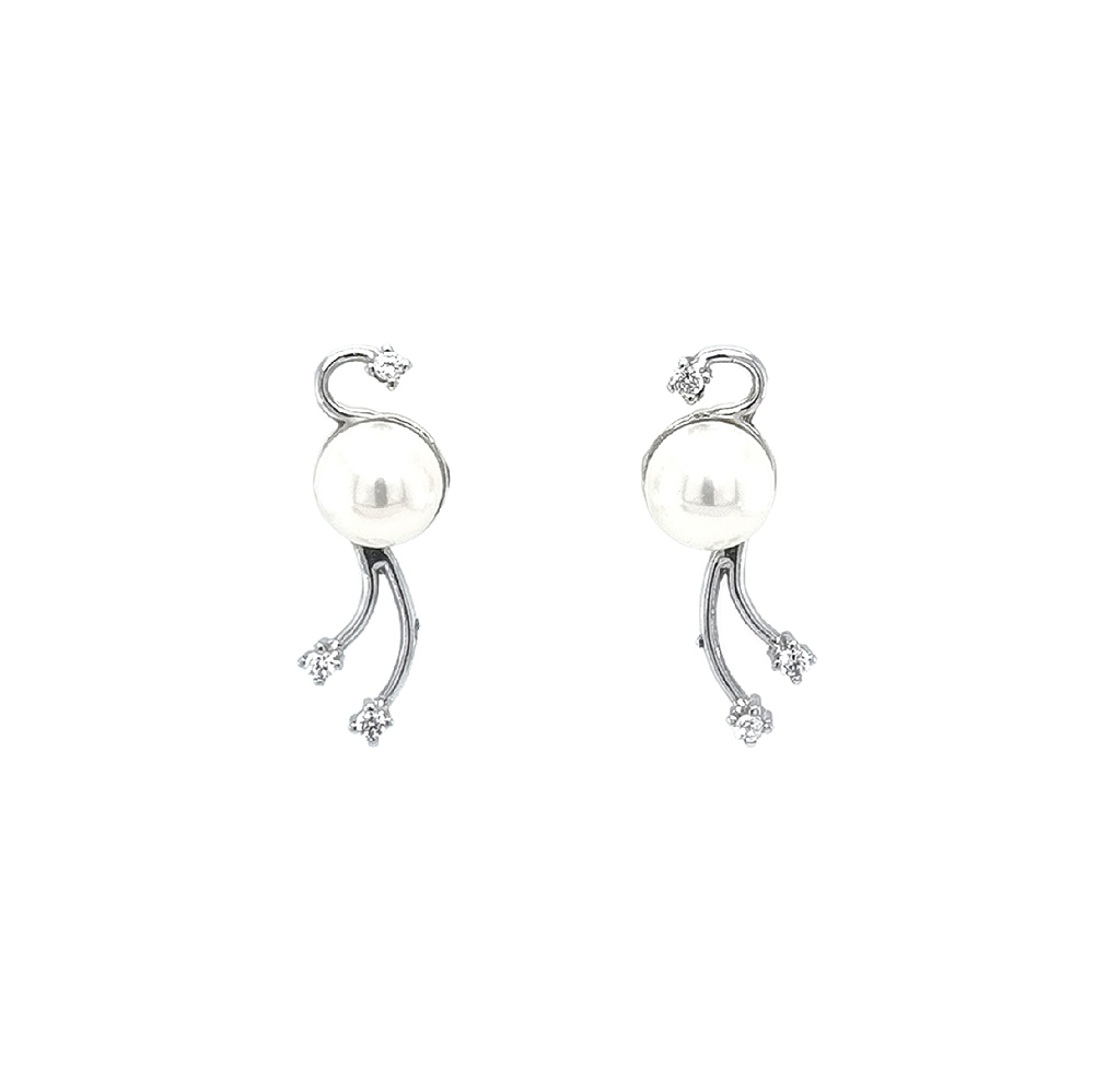 Beny Jewellery Náušnice s Perlou z Bílého Zlata
