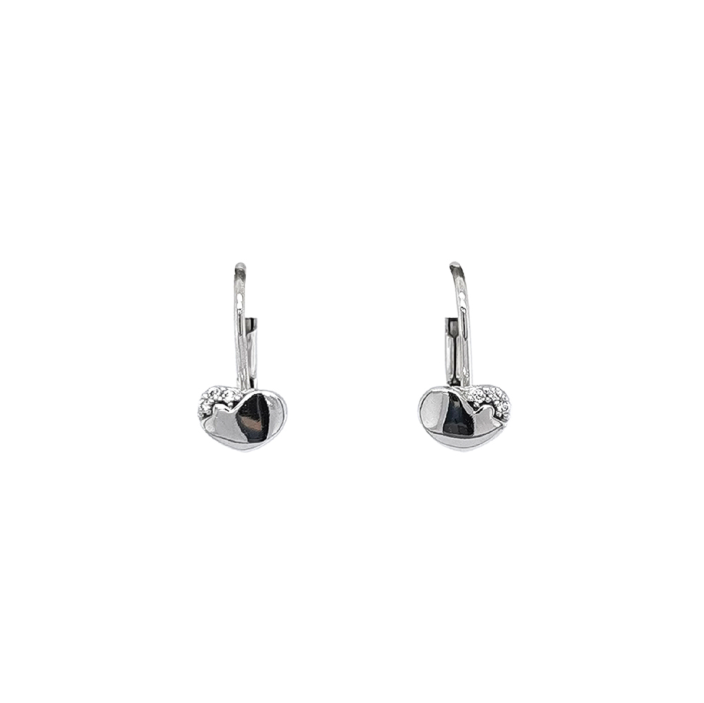 Beny Jewellery Náušnice Sdrce se Zirkony z Bílého Zlata