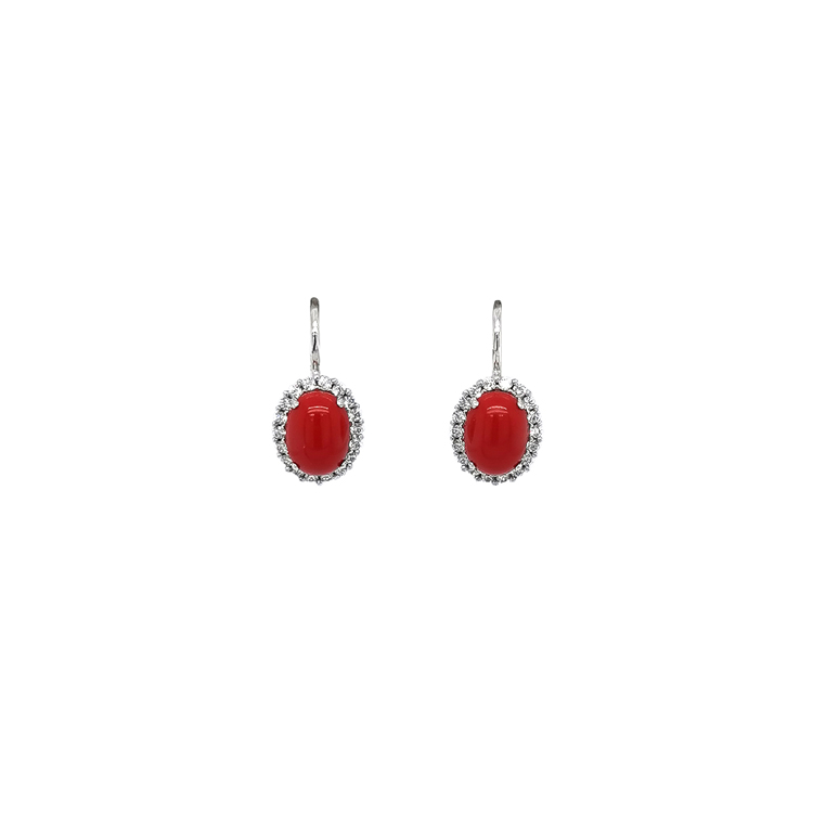 Beny Jewellery Náušnice z Bílého Zlata s Korálem