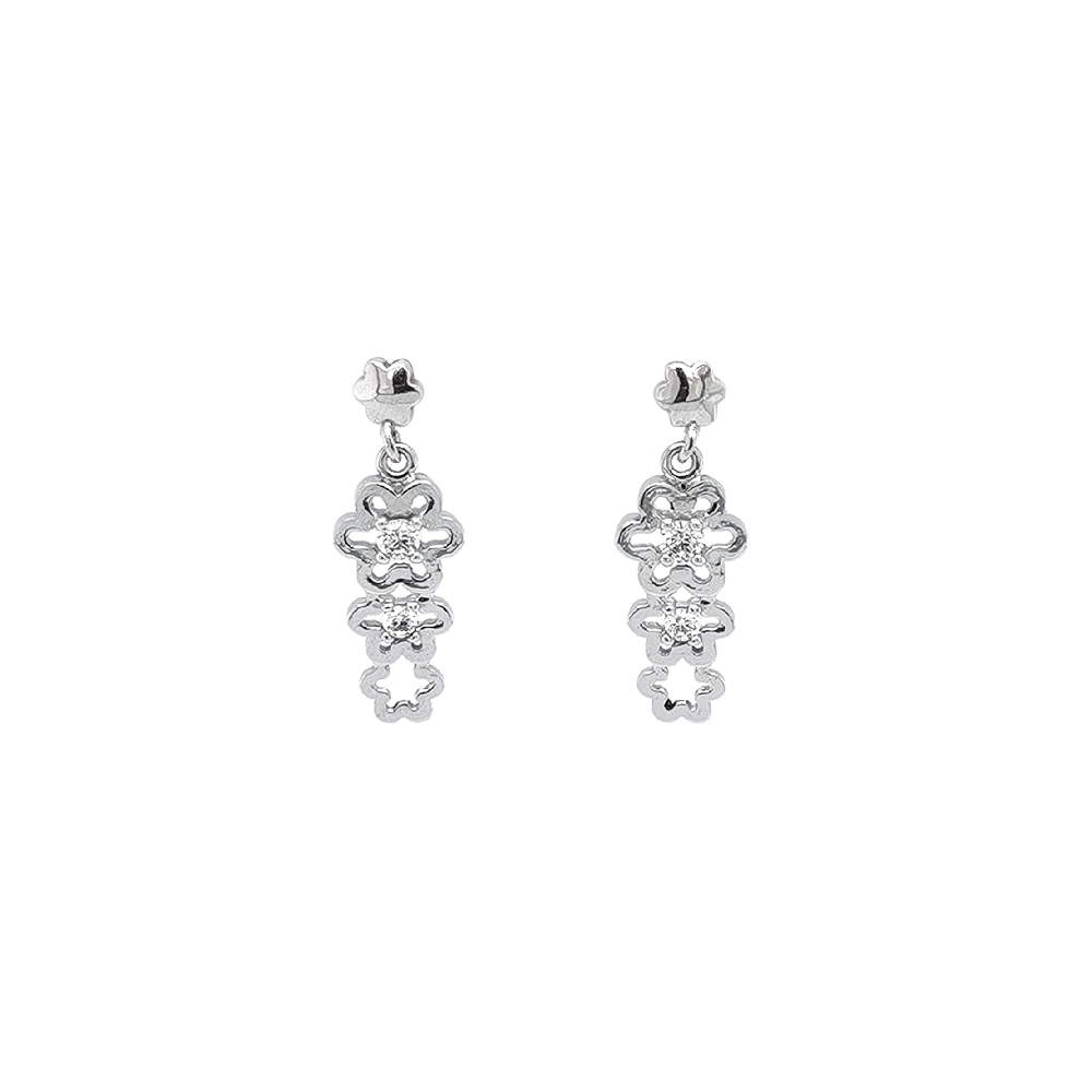 Beny Jewellery Náušnice z Bílého Zlata s Květinovým Vzorem a Třpytem Zirkonů