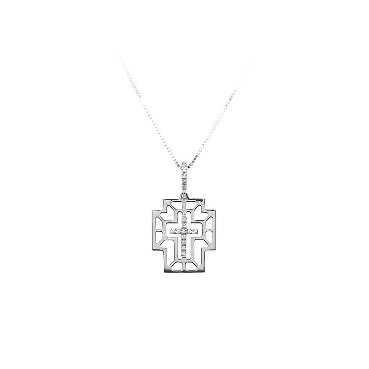 Beny Jewellery Přívěsek Kříž se Zirkony z Bílého Zlata