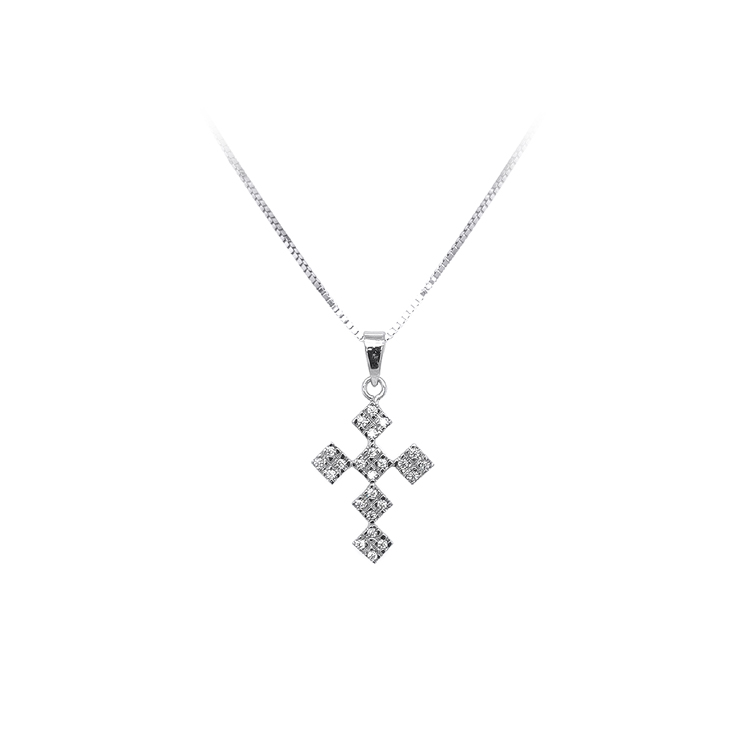 Beny Jewellery Přívěsek Kříž se Zirkony z Bílého Zlata