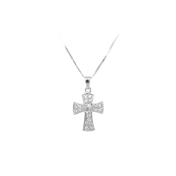 Beny Jewellery Přívěsek Kříž se Zirkony z Bílého Zlata