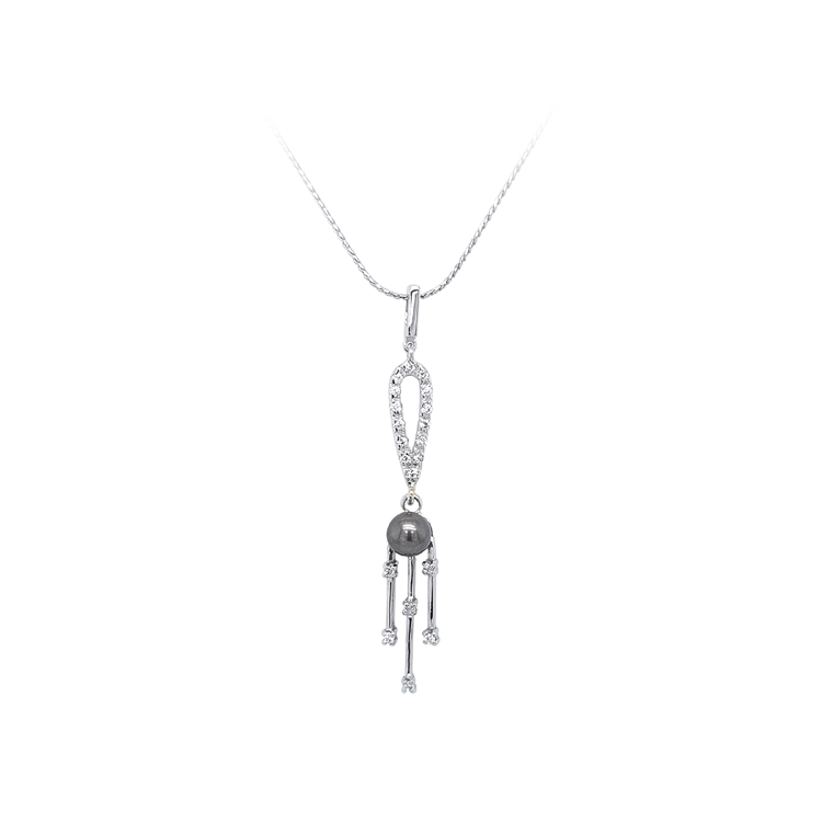 Beny Jewellery Přívěsek s Perlou a Zirkony z Bílého Zlata