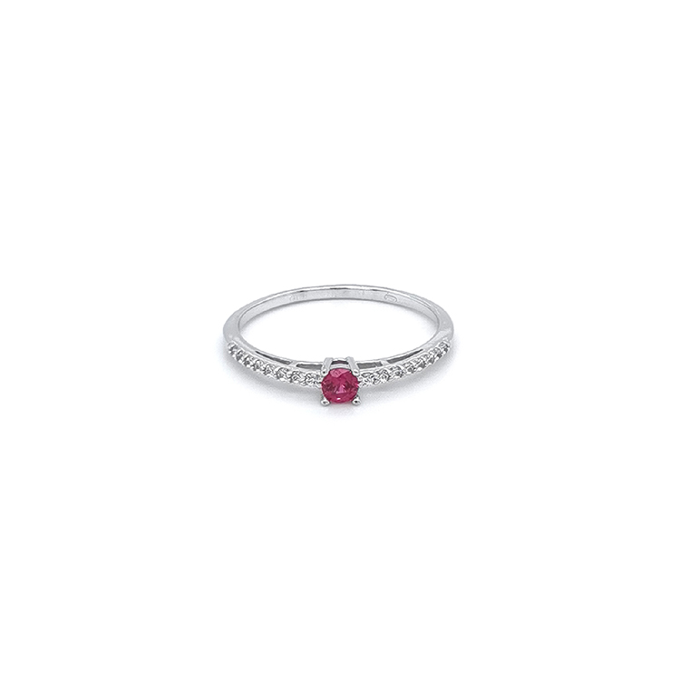 Beny Jewellery Prsten s Červeným Kamenem z Bílého Zlata