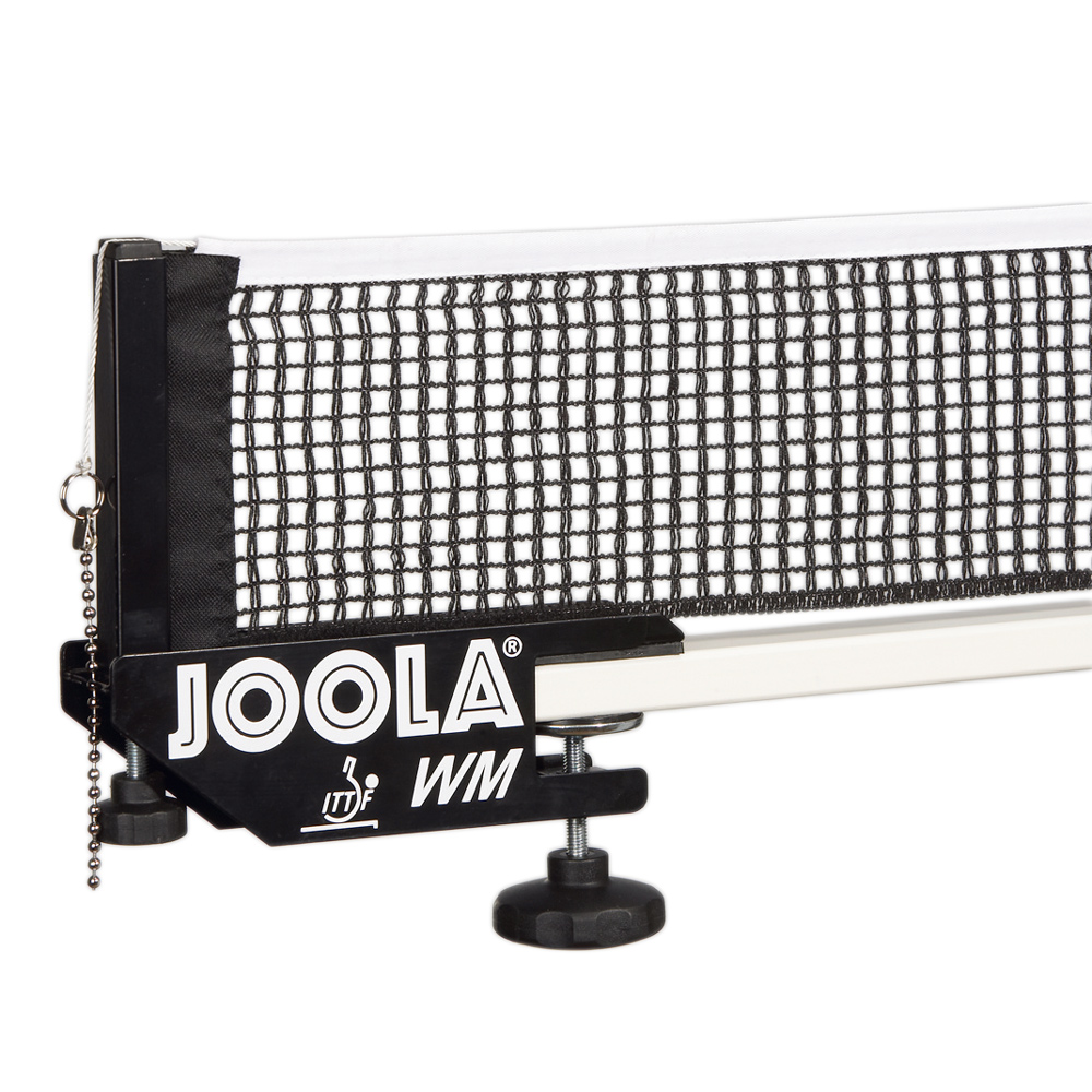 Síťka z bavlněno-ocelových vláken, vertikální nastavení napnutí, vysoká stabilita.. Síťka na stolní tenis Joola WM je jedním z nejlepších modelů sítěk značky Joola. Jedná se o velmi stabilní kovovou síť. Síťka je vyrobená z odolných bavlněno-ocelových vláken a disponuje možností micro-vertikálního nastavení. Praktické uchycení síťky na pingpongový stůl zajišťuje jednoduchý systém. Svorky jsou vyrobeny z kvalitních materiálů, které zajišťují správnou funkčnost a odolnost svorek. Síťka je provedena s bílým horním okrajem pro snadnou orientaci během hry. Síťka na stolní tenis Joola WM je schválena ITTF (Mezinárodní federace stolního tenisu) a vyhovuje normě EN 14468-2 A.