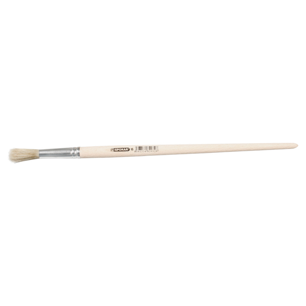 <p>Spokar Lyon je kulatý štěteček s čistou přírodní štětinou a dřevěným nelakovaným držadlem. • Univerzální pro všechny druhy nátěrových hmot • jako kreslící štětec • pro práci na špatně přístupných místech • pro malování linek, kontur apod. • pro dokončovací a detailnější nátěry • pro nátěry menších plošek • Vlákna čistá přírodní štětina • velikost číslo 12 • držadlo dřevěné nelakované</p>