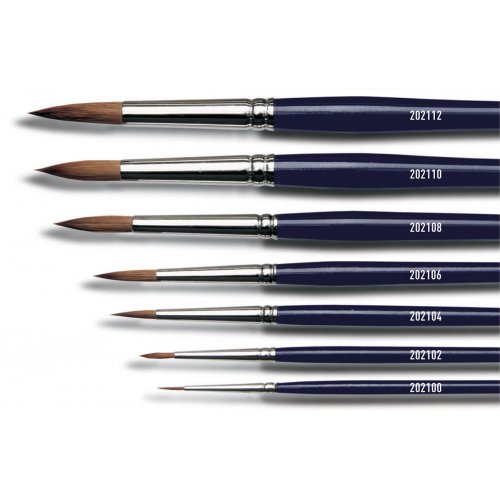 Štětec ze sobolí srsti SOLO GOYA Jednoduché, nejcennější a nejkvalitnější ze všech našich štětců. Tyto krásně tvarované štětce splňují nejvyšší očekávání. Vysoce savé a velmi dobře drží barvu. Vynikající pro návrhy i pro pozadí. Vlákno vyrobené z nejkvalitnější 100 % čisté červené sobolí srsti kulatý, kuželový, středně dlouhý tvar. Bezešvé, niklované, připojení k rukojeti v barvě noční modrá