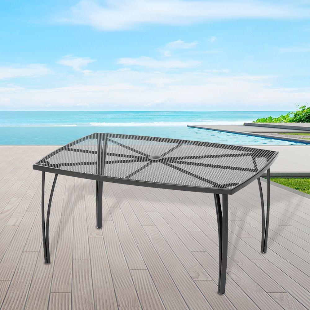 Kovový zahradní stůl ZWMT-24 Zurich s drátěnou vrchní deskou obdélníkového tvaru. Výborně se kombinuje se všemi typy kovového zahradního nábytku. Je lehce udržovatelný a omyvatelný. Tento stůl má otvor pro slunečník (průměr 44 mm).