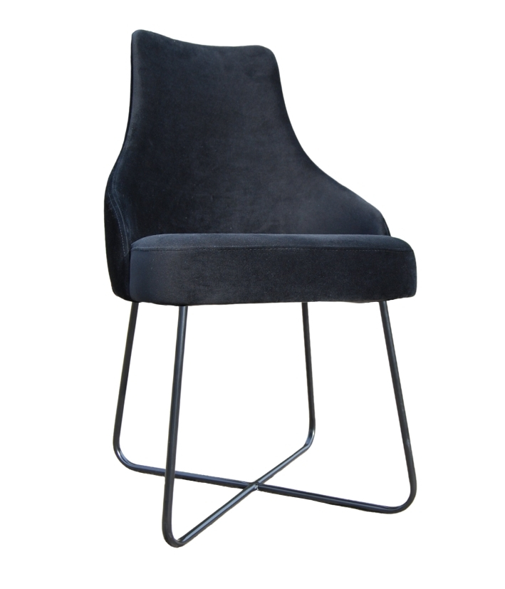 Kovová jídelní židle Eric, zaoblené tvary, tenké zkřížené nožky a mnoho barev. Velké množství nejrůznějších potahů (látka, koženka i kůže) zaručuje, že židle zapadne do různých interiérů včetně těch náročných jako jsou veřejné prostory. Látky jsou navíc vysoce odolné vůči poškození a skvrnám. Jsou tak vhodné i pro rodiny s malými dětmi či domácími mazlíčky. Látky jsou současně odolné vůči žáru, což je ideální vlastností pro kuřáky.