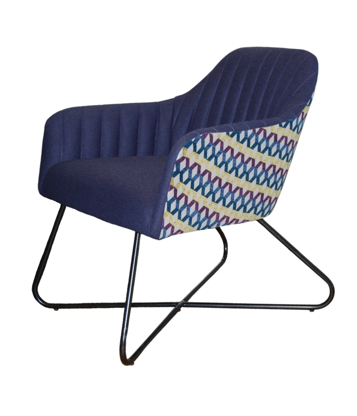 Křesílko lze vyrobit v odlišném látkovém potahu zad a přední části. Lze si navolit i odlišný design kovových nožek (viz prosím fotogalerii).