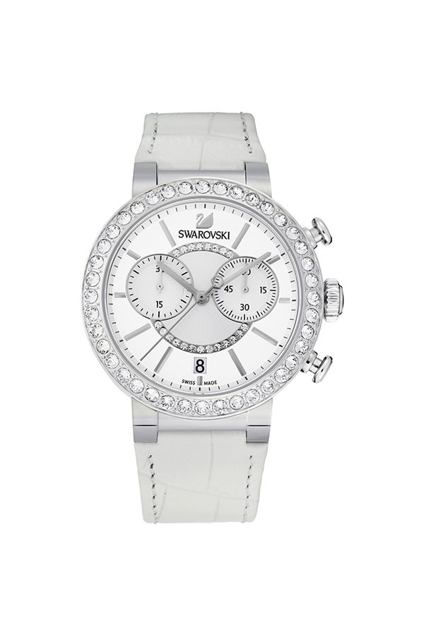 Módní dámské hodinky nabité funkcemi jsou stvořené pro ženu, jež si ráda dopřeje výrazný šperk. Na šedobíle laděném číselníku najdete chronograf i datumovku a uvnitř i po obvodu se třpytí dokonalé Swarowski krystaly. Nápaditý model v bílém provedení, jenž se stane tématem rozhovorů s vašimi kamarádkami.