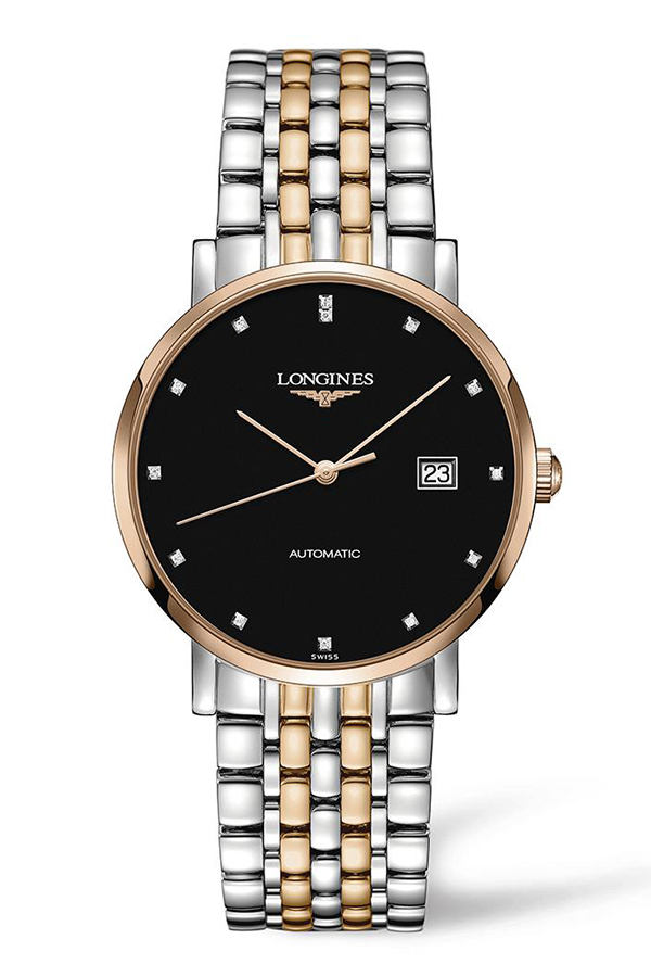 S těmito pánským hodinkami budete vypadat noblesně, i když se vydáte na procházku přírodou. Jejich luxusní vzhled je zásluhou bicolorního pásku a celkového dvoubarevného provedení, v němž se kombinuje stříbrná s moderním růžovým zlatem. Pozornost na sebe strhne především tmavý černý ciferník osázený diamanty a datumovkou. Velké pouzdro je doplněno safírovým sklíčkem.