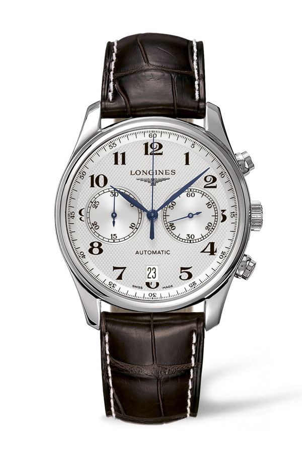Unikátní kolekce THE LONGINES MASTER COLLECTION představuje klasické hodinky, které k elegantnímu designu přidávají luxusní materiály. V tomto modelu bílý ciferník v ocelovém pouzdru zaujme precizně zvládnutými detaily. Přesný čas vyměřuje trojice ručiček, po obvodu jsou vepsané přehledné číslice i rozdělení minutových úseků. Dalšími funkcemi jsou chronograf a datumovka. Pánské hodinky nese stylový hnědý kožený pásek, který atraktivně prošívá bílá linie.