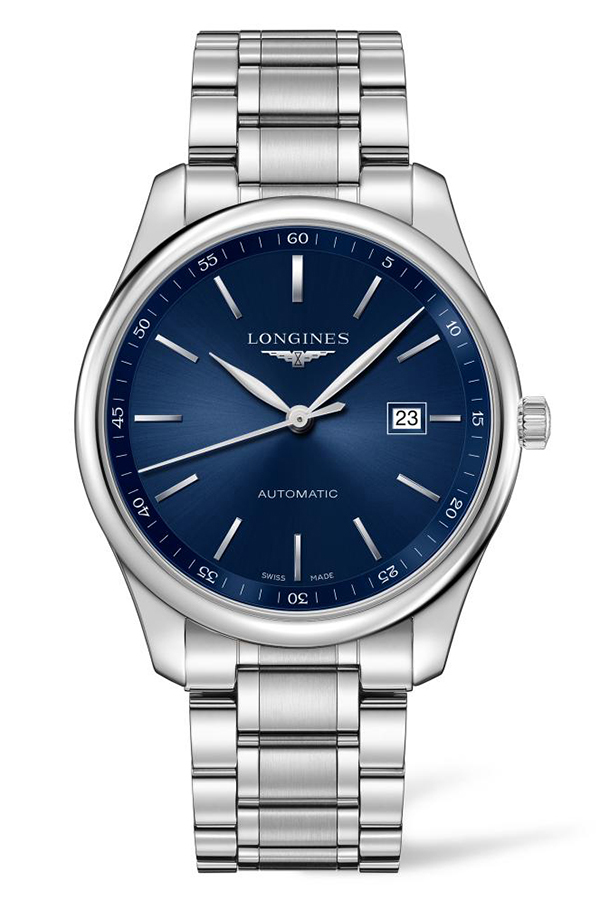 Řada THE LONGINES MASTER COLLECTION efektně kombinuje luxusní materiály a modelům hodinek se stálostí drží klasický nadčasový design. Tento model elegantně pracuje s temně modrou v ciferníku, který vystupuje z ocelového pouzdra. Stříbrný pásek umně skládá drobné články v celé své délce. Přesný čas určuje trojice stříbrných ručiček, které pohání mechanika s automatickým nátahem.