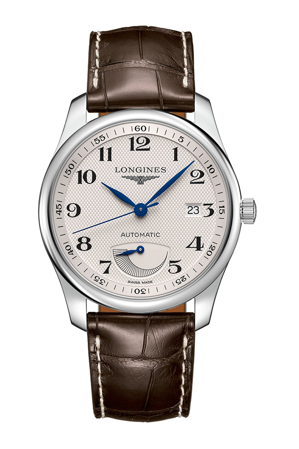 THE LONGINES MASTER COLLECTION zasluhuje plnou pozornost nejen výběrem luxusních materiálů, ale také precizním zpracováním. Klasický design podtrhuje elegantní kožený pásek v hnědé barvě v motivu Aligátor. Ocelové pouzdro chrání stříbrnou plochu ciferníku. Přesný čas přehledně vyznačuje trojice ručiček na podkladu dobře čitelných číslic. Funkce atraktivně doplňuje datumovka, v tomto modelu i ukazatel rezervy chodu ve spodní části.