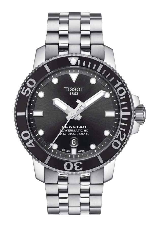 Pokud chcete působit nadčasově a stylově, je barevná kombinace stříbrné a černé spolehlivou zárukou úspěchu. Pánské hodinky Tissot se na ruku připínají ocelovým řemínkem zakončeným trnovou sponou. Výrazný černý ciferník je ukrytý pod pevným safírovým sklíčkem, a kromě analogového číselníku se na něm nachází také datumovka. Pouzdro má průměr 43 milimetrů a je vyrobené z oceli, zatímco luneta je keramická. Potápěčské hodinky jsou voděodolné do hloubky 300 metrů a patří do kolekce T-SPORT.
