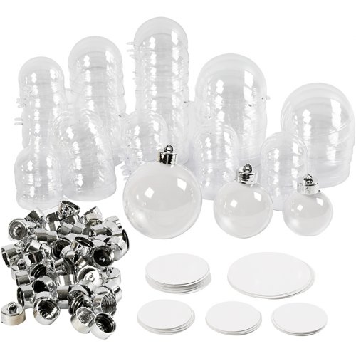 Vánoční dekorace Dvoudílné závěsné plastové baňky k dozdobení. Součástí balení jsou volné kartonové destičky k dozdobení. Dodáváno v úložné krabici o rozměrech 37×37 cm. V balení naleznete 3 různé velikosti: 10 ks x 8 cm, 20 ks x 6 cm a 30 ks x 5 cm