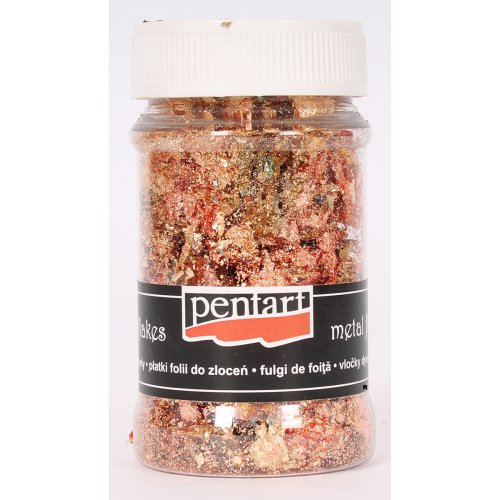 Vločky metalické 1 g Vločky z metalické fólie v zajímavých barevných kombinacích, na vytvoření pozlaceného povrchu s mramorovým efektem. Na závěrečné přelakování použijte lesklý syntetický lak.