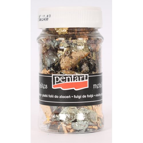 Vločky metalické 1 g Vločky z metalické fólie v zajímavých barevných kombinacích, na vytvoření pozlaceného povrchu s mramorovým efektem. Na závěrečné přelakování použijte lesklý syntetický lak.