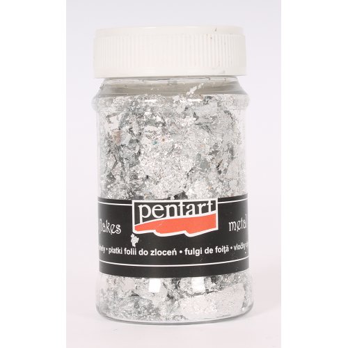 Vločky metalické 1 g Vločky z metalické fólie v zajímavých barevných kombinacích, na vytvoření pozlaceného povrchu s mramorovým efektem. Na závěrečné přelakování použijte lesklý syntetický lak.