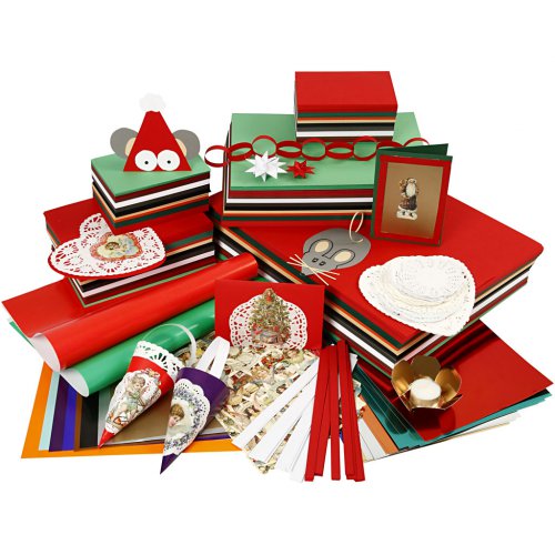 Chystáte se tvořit vánoční dekorace ve velkém? V naší výhodné vánoční nabídce najdete různé materiály na výrobu elegantních a krásných vánočních ozdob. Sada obsahuje: 1500 listů vánočního kartonu A6-A3, 100 listů lesklého papíru, 30 listů kartonu s metalickou fólií, 2×500 papírových proužků na hvězdičky, 400 ubrousků a 10×3 výseků ve stylu vintage
