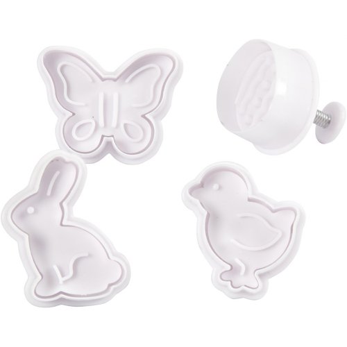 Vykrajovátka s razítkem na cukroví embasování dortů na vykrajování z Fimo hmoty, WePam hmoty a dalších modelovacích hmot bílá 4 ks velikost 5 cm