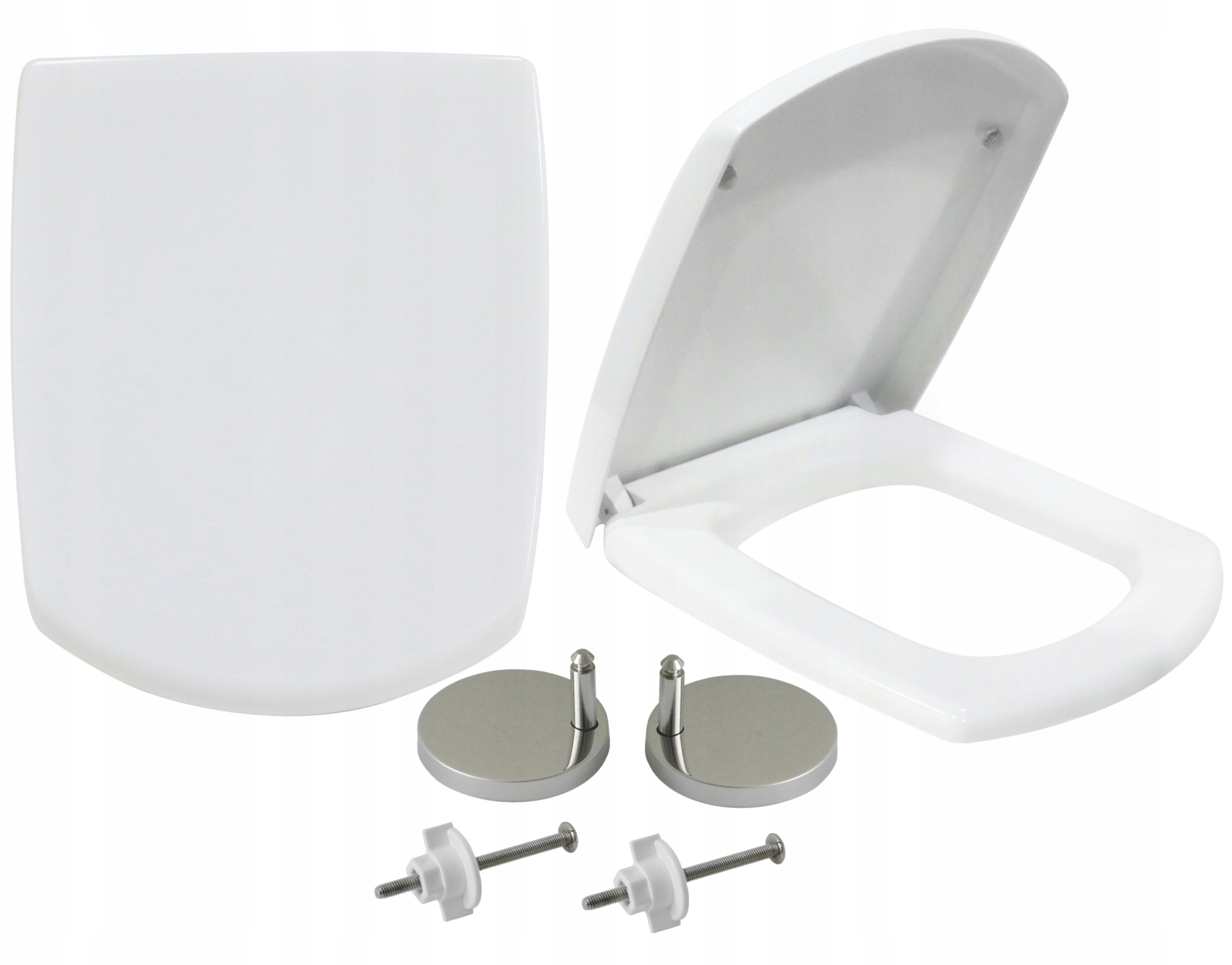 Obdelníkové odnímatelné WC prkénko s pomalým sklápěním. Upevnění je regulovatelné jak do šíře od 13 cm do 20 cm tak dopředu a dozadu 4,6cm. Rychloupínání umožňuje po mírném zatlačení na dvě tlačítka prkénko odebrat a zjednodušit si tím přístup při čištění mísy.